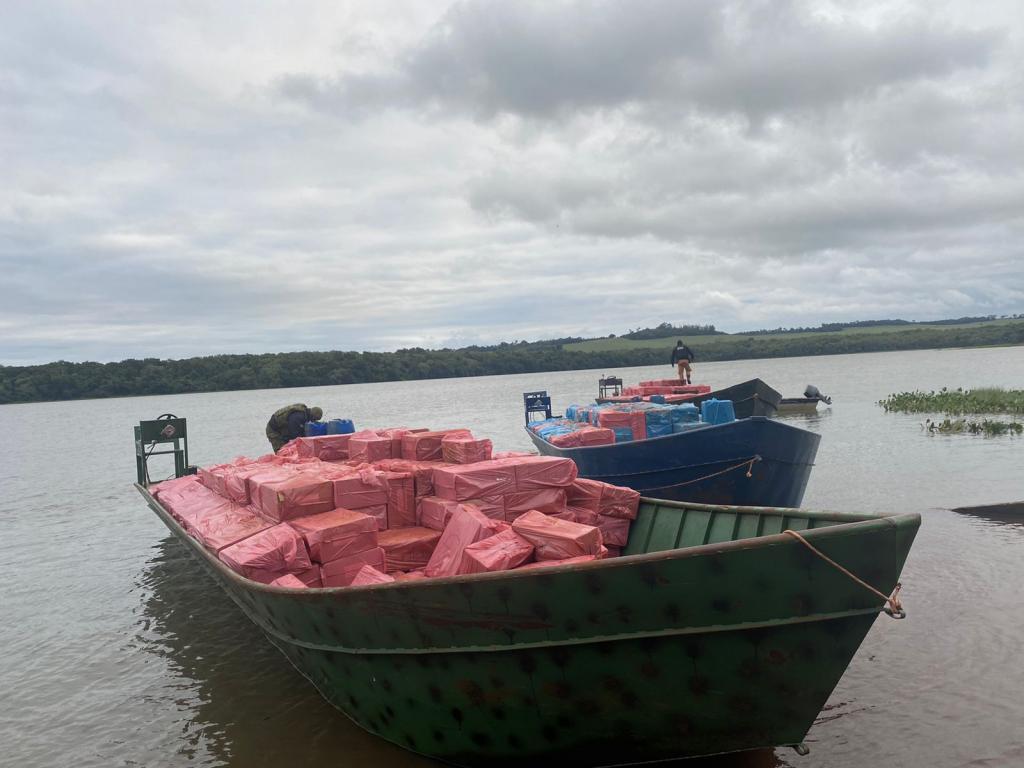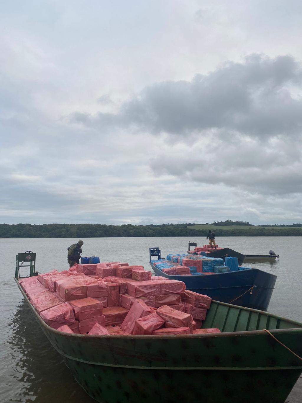 Os indivíduos, então, abandonaram as quatro embarcações na margem do rio e se evadiram na mata. Neste instante, os policiais efetuaram a aproximação e verificaram que as embarcações estavam carregadas com cigarro contrabandeado, de origem estrangeira.