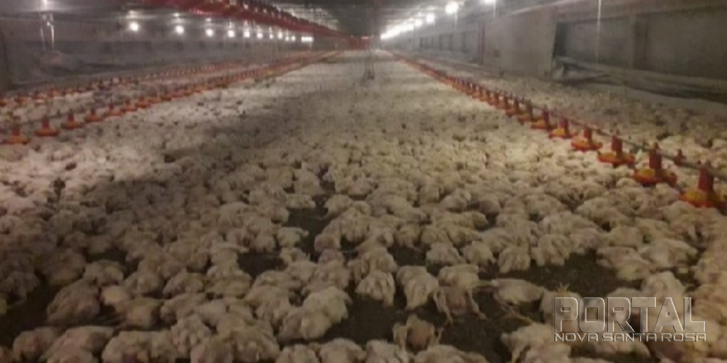 Mais de 30 mil frangos morreram em menos de 10 minutos, após falta de energia elétrica na linha São Paulo, interior do município de Toledo.