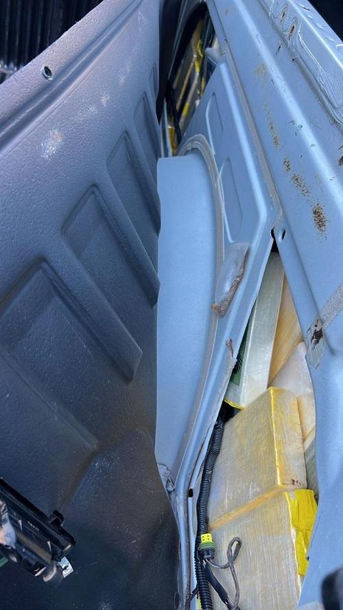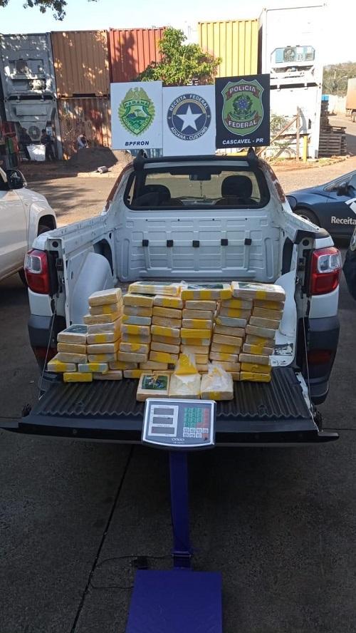 O entorpecente estava escondido em compartimentos ocultos na caçamba de uma caminhonete Fiat Strada, de cor branca. O veículo foi abordado pelas equipes no âmbito da Operação Protetor de Divisas e Fronteiras.