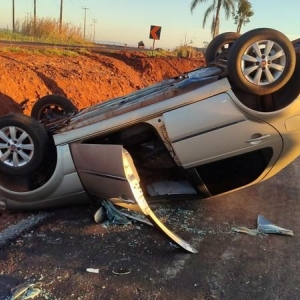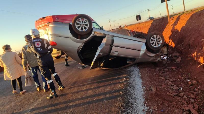 O acidente envolveu um veículo Fiat Siena, que acabou capotando no local. Ainda não há informações oficiais sobre as causas do capotamento.