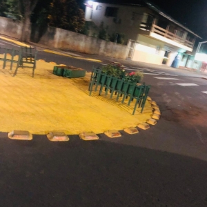 Na noite desta quarta-feira (12), em Nova Santa Rosa, uma imagem foi flagrada na rotatória da avenida Santo Cristo esquina com a avenida Tucunduva. Tudo indica que algum condutor colidiu contra as floreiras novamente.