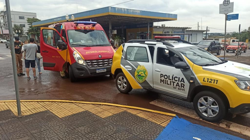 O acidente de trânsito ocorreu no momento em que a condutora da Honda trafegava pela rua Barão do Rio Branco, enquanto o Fiat seguia pela rua Nossa Senhora do Rocio, e no cruzamento das vias houve a colisão.