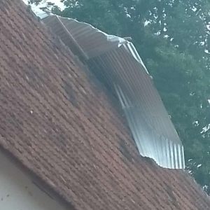 Segundo informações de um internauta, pelo menos um poste caiu e telhados foram arrancados.