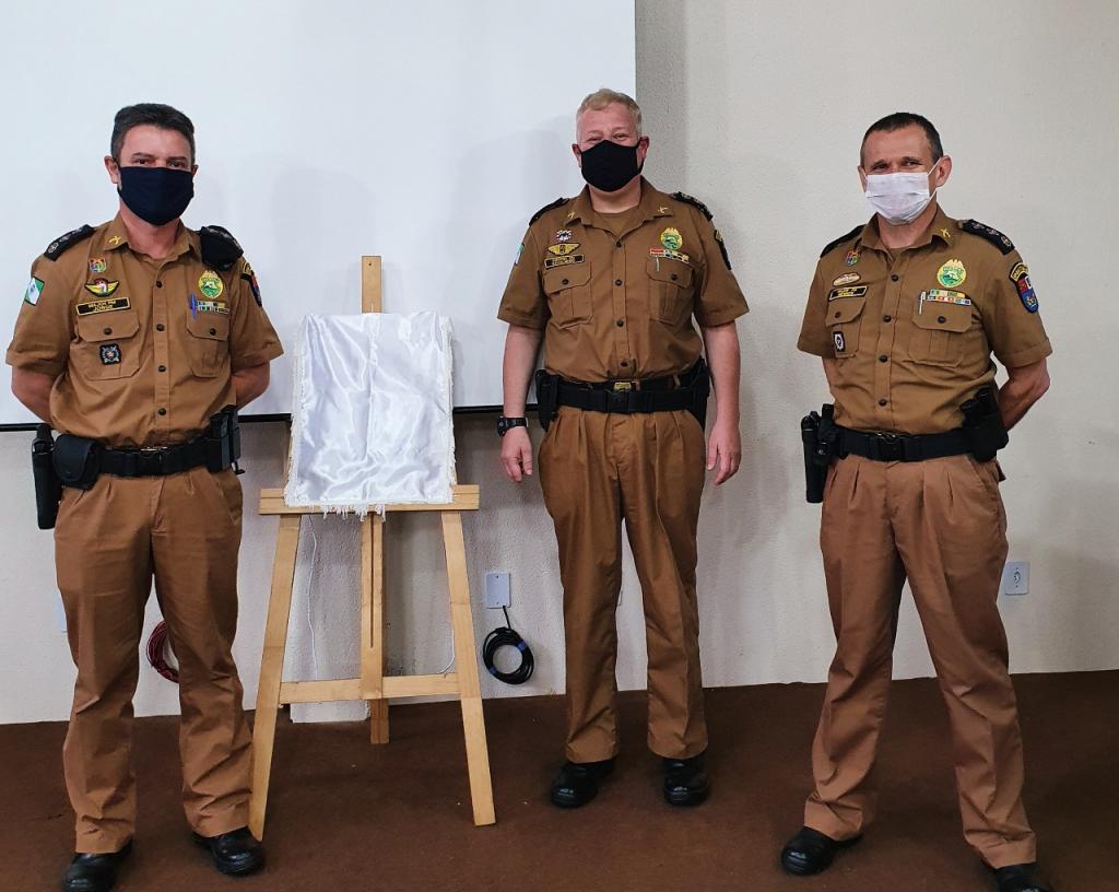 Após o ato de passagem de comando, foi feito o descerramento do quadro do Major Jorge, que será fixado na galeria de ex-comandantes da unidade.