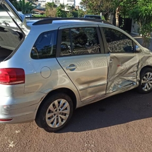 Na manhã de hoje (22), um veículo Saveiro trafegava pela rua Panambi e um SpaceFox seguia pela rua Coronel Vicente no Jardim La Salle em Toledo e no cruzamento das vias aconteceu a batida.