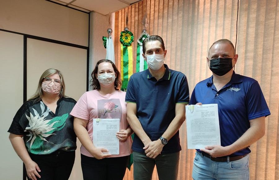 Trata-se do repasse de R$ 340 mil por parte do município em prol da APAE. Os convênios foram assinados nesta sexta-feira (21), pelo prefeito Marcio Rauber e pelo presidente da APAE, Roberto Thomé (Beto). Acompanharam o ato a assistente social Vanessa e a gestora de parceria dos termos, Débora.