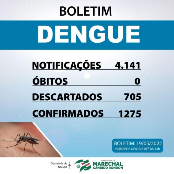 A secretaria municipal de saúde de Marechal Cândido Rondon divulgou na tarde desta quinta-feira (19), o boletim da dengue, com os números referentes a epidemia da doença no município rondonense.