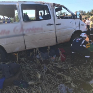 O veículo levava 15 pessoas – entre elas o motorista – que haviam encerrado o turno de trabalho em uma granja e se deslocavam para outra unidade. Durante o trajeto, o condutor perdeu o controle da direção, fazendo com que a van saísse da pista e capotasse.