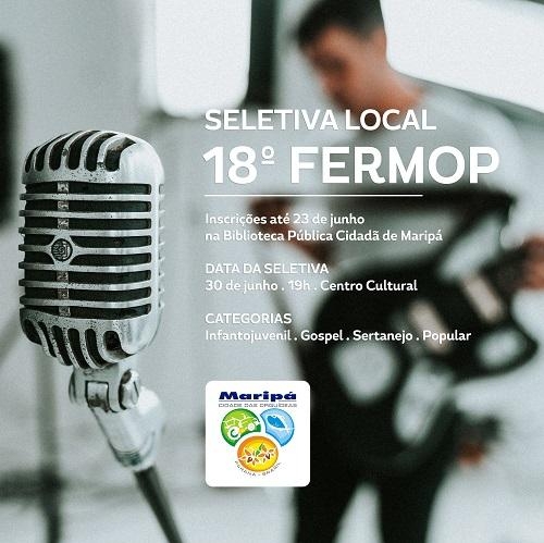 Vai até o dia 23 de junho o período de inscrições para a seletiva local dos músicos que irão representar o Município de Maripá na 18ª edição do FERMOP - Festival Regional dos Municípios do Oeste do Paraná. Os interessados podem se inscrever gratuitamente na Biblioteca Pública Cidadã Professora Marlene Alenbrant.