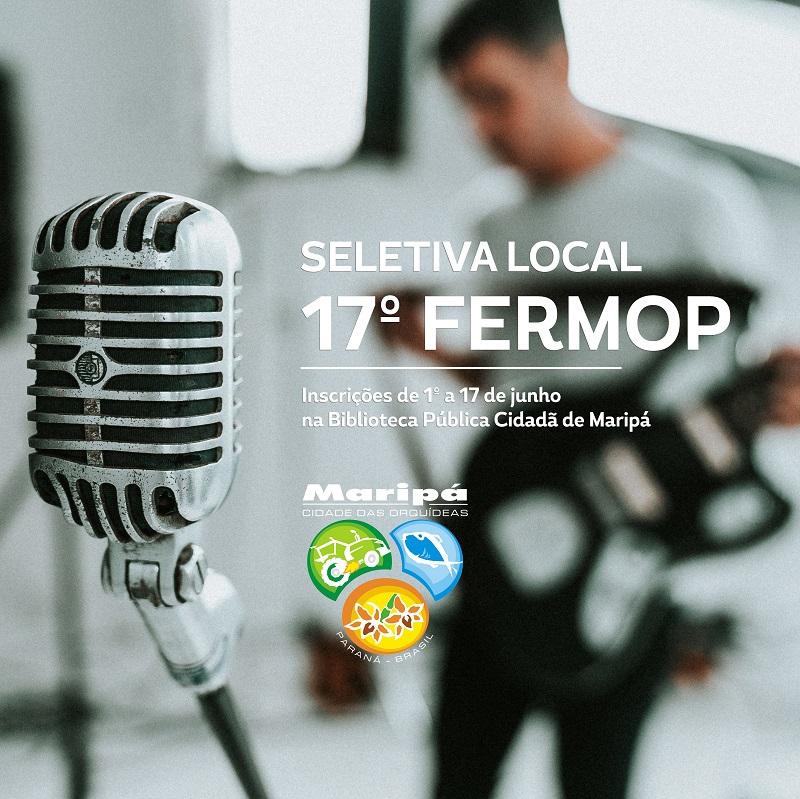 Começa no dia 1º de junho o período de inscrições para a seletiva local dos músicos que irão representar o Município de Maripá na 17ª edição do FERMOP - Festival Regional dos Municípios do Oeste do Paraná. Os interessados podem se inscrever gratuitamente até o dia 17 de junho, na Biblioteca Pública Cidadã Professora Marlene Alenbrant.