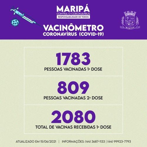 VACINÔMETRO – Até terça-feira (15), foram vacinados com a primeira dose 1.783 pessoas, o que corresponde a 31,36% da população do município e 809 pessoas com a segunda dose, representando 14,23% do total.