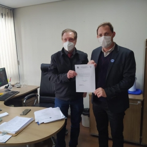 TRÂNSITO SEGURO – Schanoski também buscou apoio do deputado estadual e secretário da Administração e da Previdência do Estado do Paraná, Marcel Micheletto para a instalação de uma travessia elevada em frente à Laticínios Latco. O objetivo é unir forças para intermediar junto à SEIL/DER a implantação do redutor de velocidade, atendendo ao pedido das empresas do entorno para dar mais segurança a todos que transitam no local, onde, inclusive, já ocorreram acidentes.