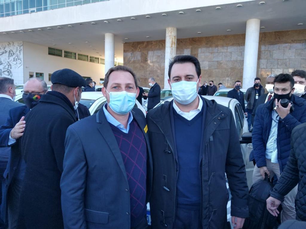 O prefeito Rodrigo Schanoski participou nesta quarta-feira (30), em Curitiba, do evento de entrega de novos veículos para a saúde, realizada pelo governador Ratinho Junior. Maripá foi contemplada com uma dessas unidades, que irá reforçar a estratégia da Saúde da Família, que presta atenção primária e leva o atendimento médico para dentro da casa dos cidadãos.