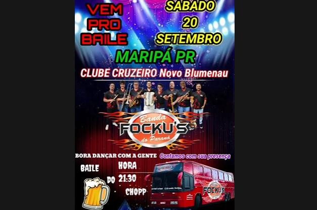 O município de Maripá será palco de um grande baile no próximo sábado, 20 de setembro. A festa será realizada no Clube Cruzeiro, no distrito de Novo Blumenau, e terá a animação da renomada Banda Fockus do Paraná.