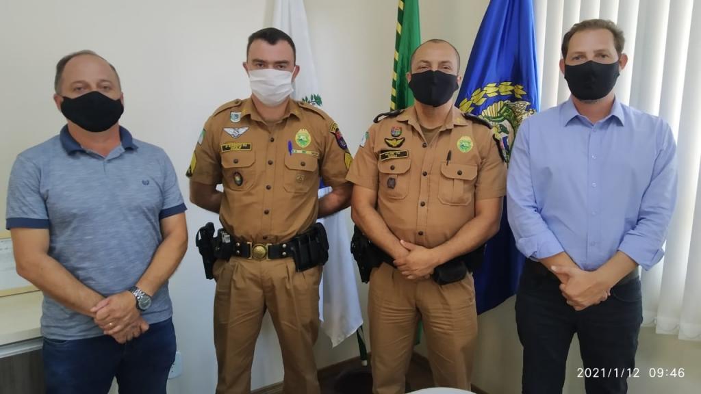 Segundo relatório da Polícia Militar, o número de roubos e furtos registrados em Maripá no ano de 2020 teve redução de 80% e 20%, respectivamente, em relação a 2019. Os dados foram apresentados pelo Major Valmir de Souza durante visita do prefeito Rodrigo Schanoski ao 19º Batalhão da Polícia Militar de Toledo na terça-feira (12). O secretário de Governo, Marcelo Biesdorf e o comandante do Destacamento da PM de Maripá, sargento Everson Wulf também estiveram presentes.