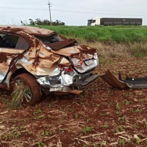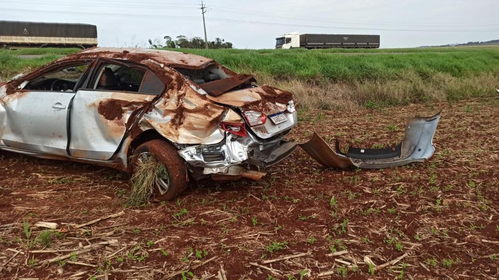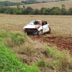 O veículo seguia no sentido a Toledo quando em uma curva a motorista perdeu o controle saiu da pista capotando por várias vezes e parando na posição normal dentro de uma lavoura.