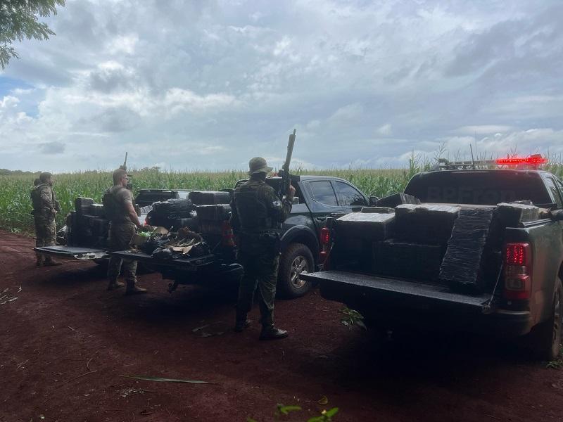 A operação ocorreu durante patrulhamento de rotina às margens do Rio Paraná, quando os policiais avistaram uma embarcação suspeita atracando no lado brasileiro da fronteira. Diante da possibilidade de atividade criminosa, as equipes realizaram incursões na mata próxima ao rio e localizaram diversos fardos de drogas escondidos em diferentes pontos.