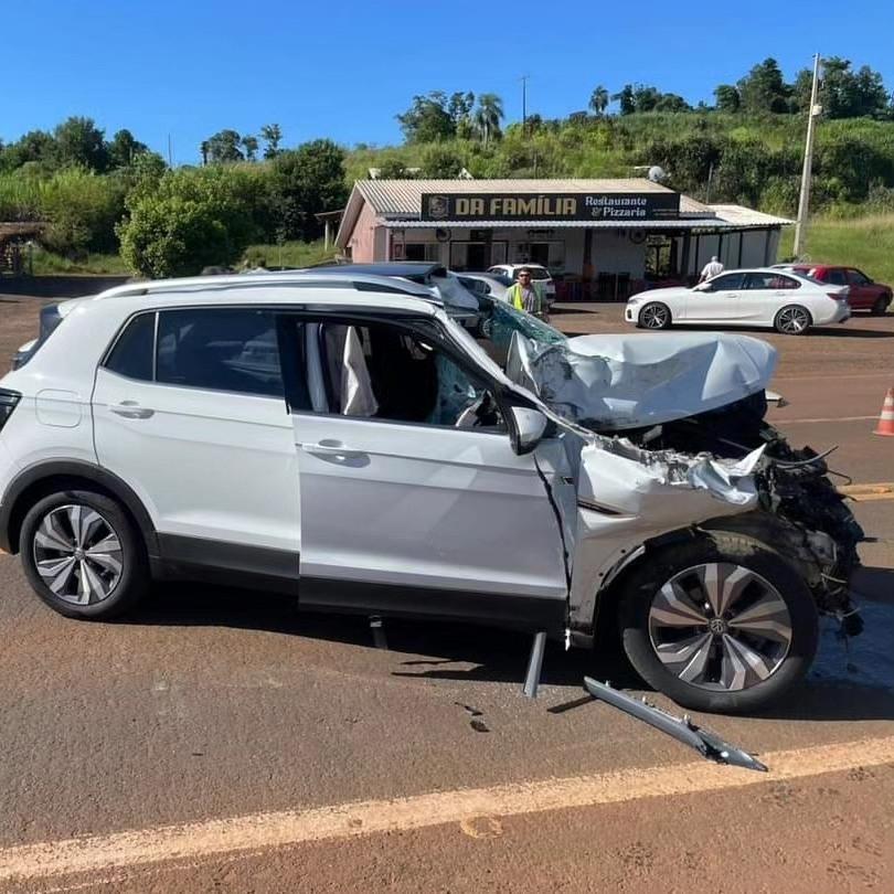 A motorista do T-Cross bateu na traseira de uma carreta, que estava parada às margens da rodovia.