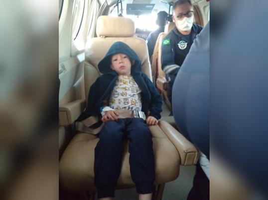 Na tarde deste domingo (17), foi transferido de avião do Hospital Regional de Francisco Beltrão para o Hospital Pequeno Príncipe em Curitiba, o menino Samuel Santos Antunes de Camargo, 5 anos, que engoliu um apito e foi parar no pulmão.