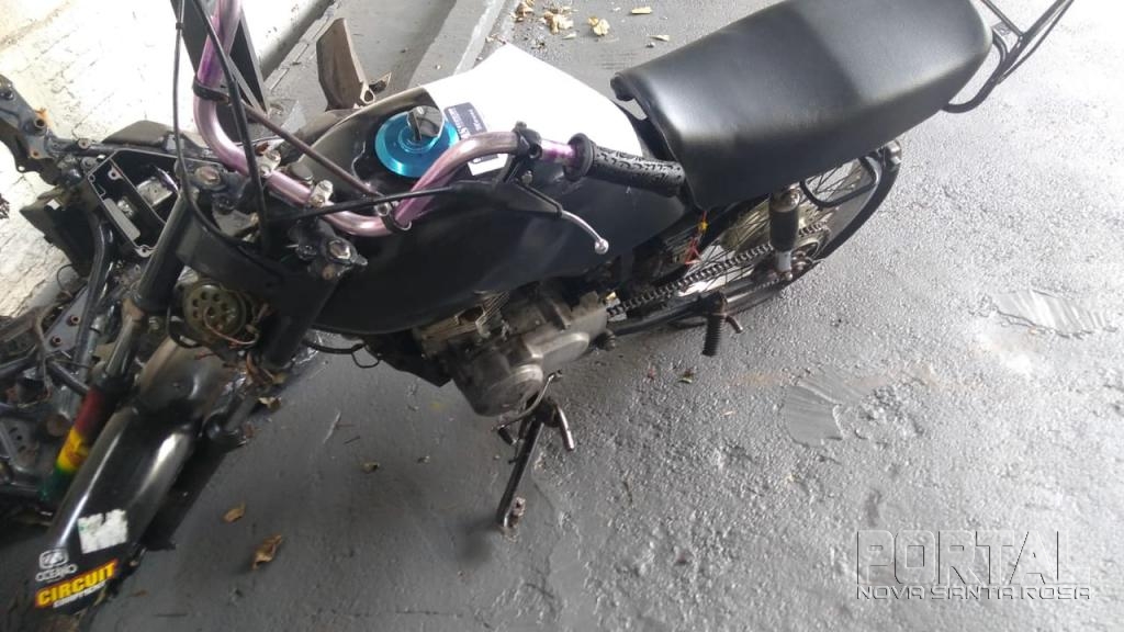 A motocicleta encontrava-se sem a placa de identificação, e seu chassi estaria “pinado”, mas ao ser realizado consulta pelo sistema de investigação policial pelo bloco do motor, foi constatado que a mesma teria indicativo de furto/roubo.