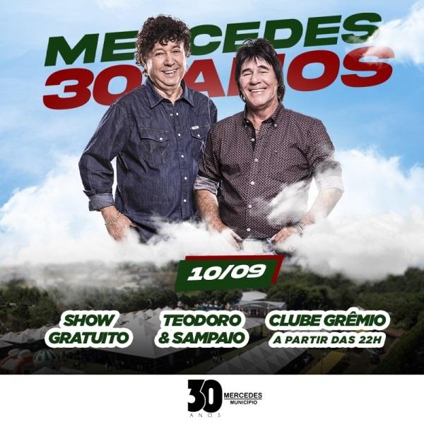 Mercedes 30 Anos - Show gratuito com Teodoro e Sampaio acontece hoje
