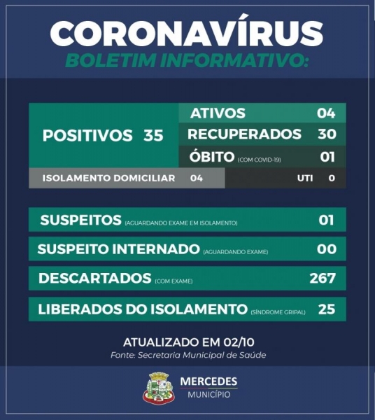 O município de Mercedes tem quatro casos ativos de Covid-19, segundo o boletim desta sexta-feira (02).