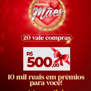 O mês de maio chegou e, com ele, a Maranathã preparou uma campanha especial para homenagear todas as mães com promoções imperdíveis, formas facilitadas de pagamento e prêmios que vão surpreender. Ao longo do mês, os clientes que comprarem na loja estarão concorrendo a 20 vales-compras de R$ 500,00, totalizando R$ 10 mil em prêmios.