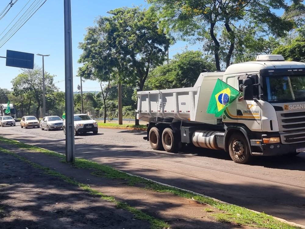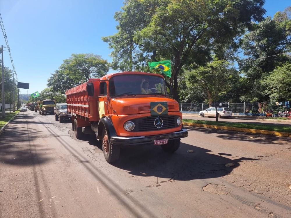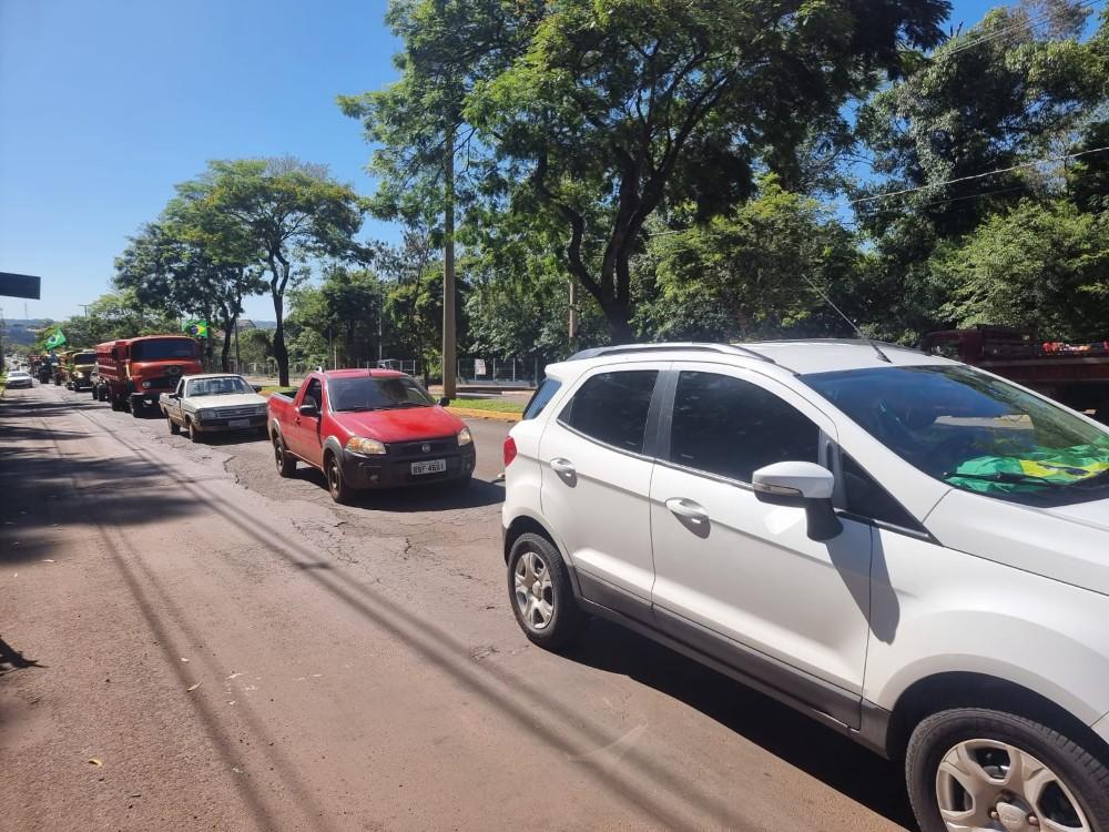 Participaram da carreata carros, motocicletas, tratores, maquinários agrícolas e caminhões.