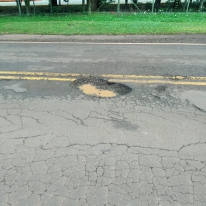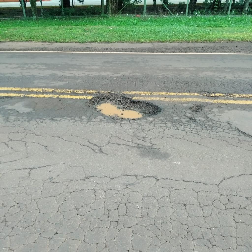 Segundo ele, um pneu do seu veículo estourou devido aos buracos que estão na pista. Ainda segundo o trabalhador seria interessante o DER ao invés de se preocupar com o corte do milho dos produtores as margens da rodovia, arrumasse a rodovia com diversos buracos que causam prejuízos aos usuários e ainda podendo causar acidentes graves.