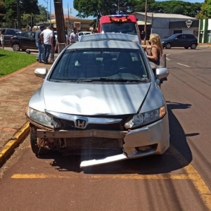 O acidente aconteceu quando o Honda Civic trafegava pela José João Muraro e a motociclista seguia pela rua Cascavel e quando os dois veículos entraram na rotatória aconteceu a batida.
