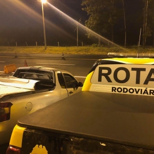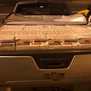Em operação na PRC-272, por volta das 04h45 desta quarta-feira (02), foi dado ordem de parada a um comboio de veículos que trafegavam em alta velocidade, porém a ordem não foi acatada, iniciando assim um acompanhamento tático, com sinais luminosos e sonoros, sendo que em determinado momento os veículos entraram em uma estrada de chão, onde foi localizado em meio a plantação de milho o veículo, GM/Montana, licenciado no município de Curitiba, o qual estava transportando aproximadamente 20 (vinte) caixas de cigarros de origem estrangeira, sem a devida documentação fiscal.