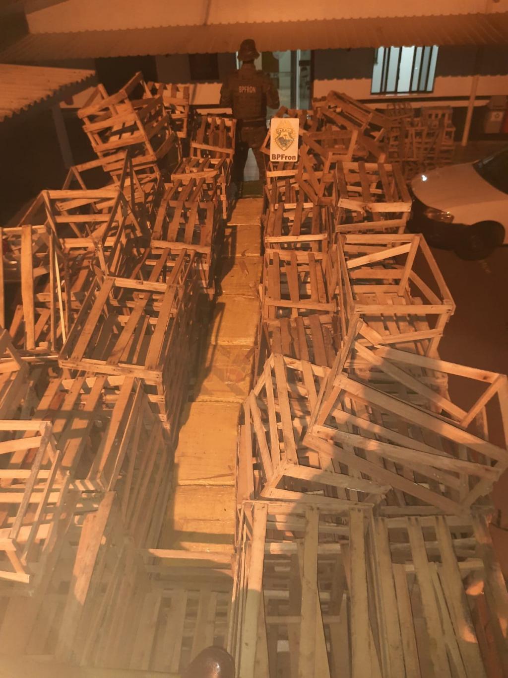 Na noite de segunda-feira (31), policiais militares do BPFRON - Batalhão de Polícia de Fronteira realizavam patrulhamento na área rural da cidade de Céu Azul, deram ordem de parada a um caminhão. Em baixo da carga de caixotes do veículo foram encontrados fardos de maconha totalizando 785 kg da droga.
