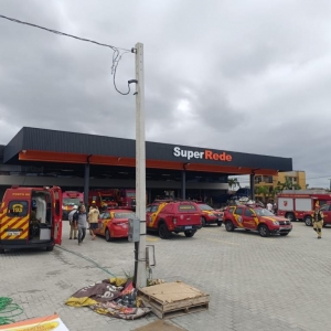 O desabamento aconteceu no início da noite de sexta-feira (22), em uma unidade do grupo Super Rede, no balneário Canoas.