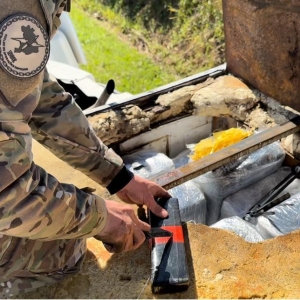 Apreensão ocorreu no município de Cruzeiro d’Oeste. A droga estava acondicionada em um fundo falso preparado para o transporte do entorpecente.
