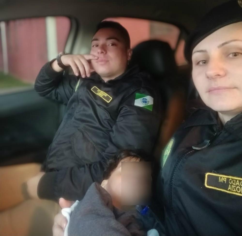 A PM foi acionada e resgatou o bebê. Conforme a policial Hozia Milena, ela e o colega procuraram acalmar o menino, dar carinho a ele e esquentá-lo.