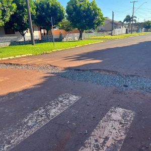 Moradores de Nova Santa Rosa entraram em contato com a reportagem do Portal na manhã desta segunda-feira para reclamar de um buraco deixado na esquina da rua Santo Americo com a avenida Tucunduva, o buraco foi aberto para obras da Sanepar que estão inacabadas e foi colocado pedras que se espalham no asfalto com a passagem dos veículos.