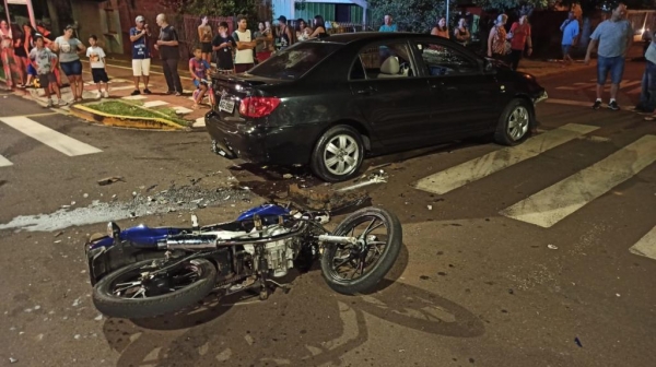 Conforme informado pela Polícia Militar, o Corolla trafegava pela rua General Félix da Cunha e a moto seguia no sentido contrário pela mesma via.