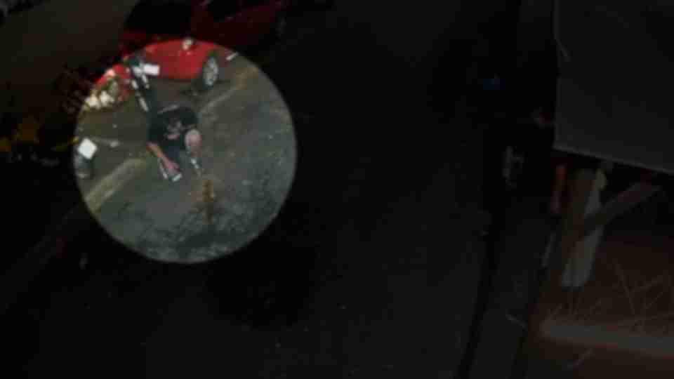 Já do lado de fora, câmeras mostram o atleta correndo atrás de um homem de camisa vermelha, que chega a ser derrubado antes de fugir novamente. Em outra gravação, um homem de camiseta azul surge de dentro do estacionamento e dispara em direção ao grupo. Rafael, que estava na calçada oposta, é atingido e se abaixa imediatamente, colocando a mão no peito. Ele morreu antes da chegada dos socorristas.