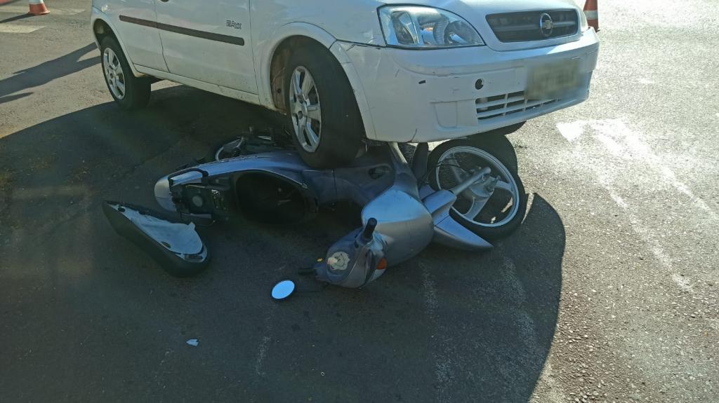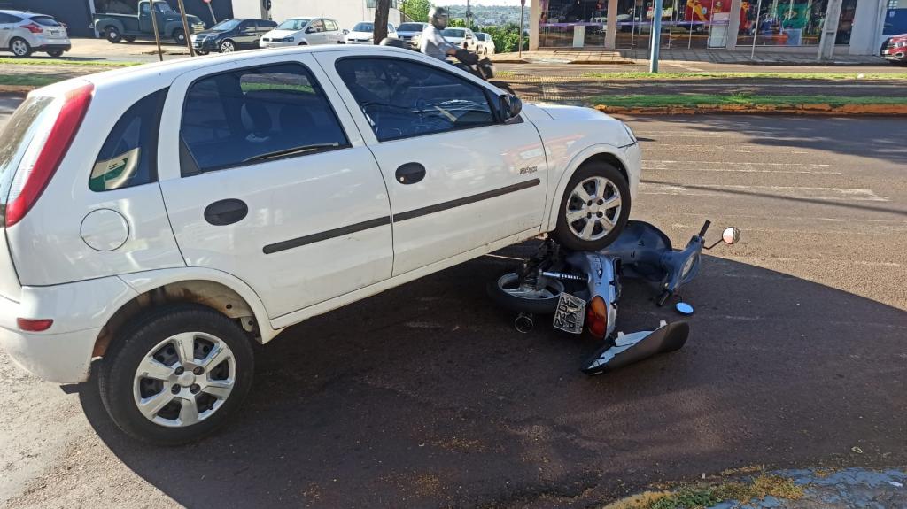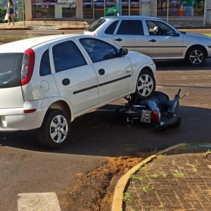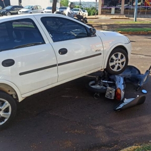 Um acidente entre carro e moto foi registrado no início da manhã desta quinta-feira na avenida José João Muraro esquina com rua Nossa Senhora de Fátima no Jardim Bandeirantes em Toledo.