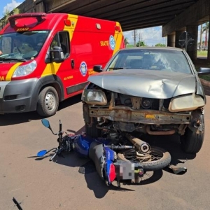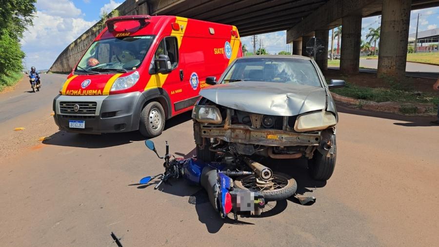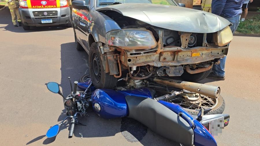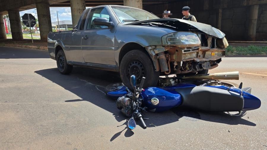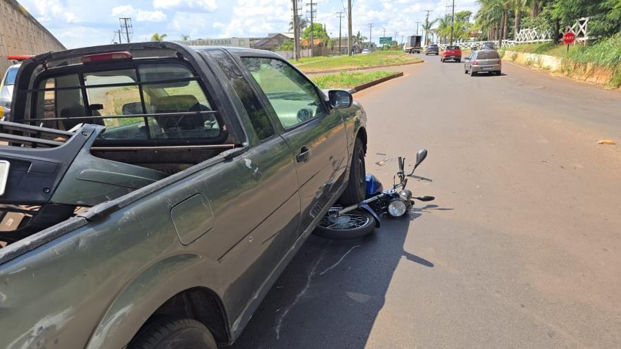 Um acidente de trânsito mobilizou as forças de segurança na tarde desta quarta-feira (11), na marginal do trevo da Copagril (AACC), em Marechal Cândido Rondon. A colisão envolveu uma VW Saveiro e uma motocicleta Honda CG.