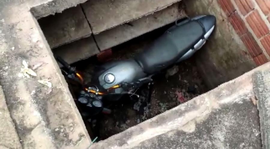 A Polícia Civil informou que investiga o caso para tentar localizar o dono da moto, identificar como o veículo foi parar no local, além de apurar quem é o suspeito pelo roubo e por esconder o veículo.