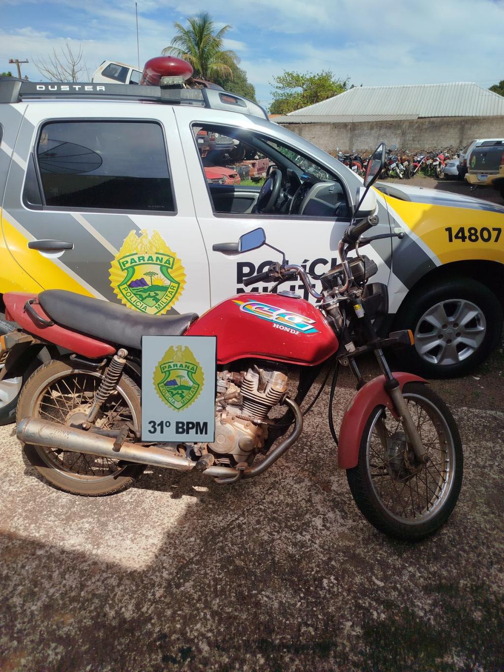 Segundo informações da PM, a equipe foi informada de que uma motocicleta havia sido furtada em Palotina. Durante as diligências, os policiais localizaram o veículo entrando em uma residência em Terra Roxa.
