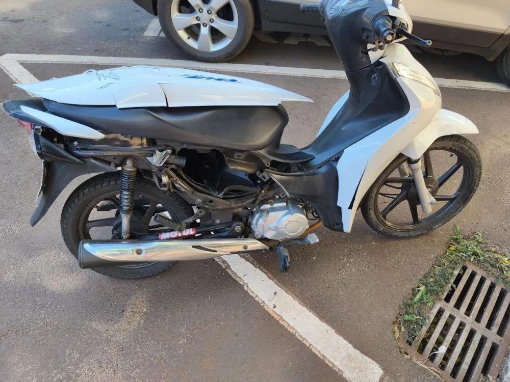 A colisão envolveu uma motocicleta Honda Biz e um automóvel Chevrolet Tracker.