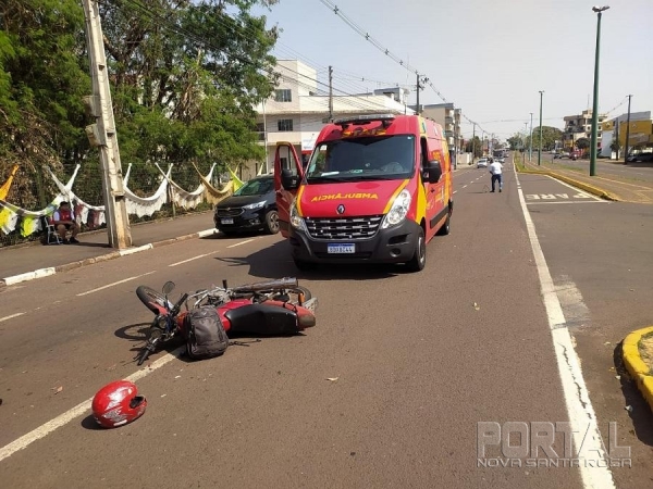 Uma moto Honda Titan e um Fiat Uno se envolveram em uma colisão no início da tarde desta sexta-feira na avenida Parigot de Souza em Toledo, região do Lago Municipal