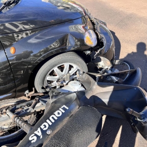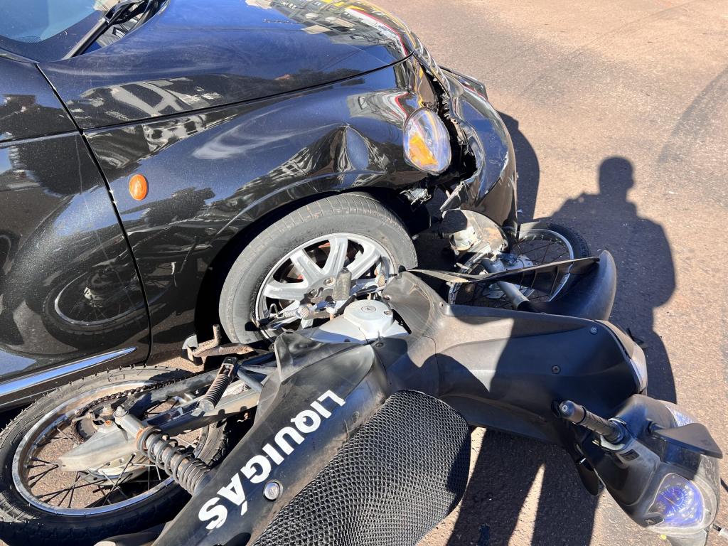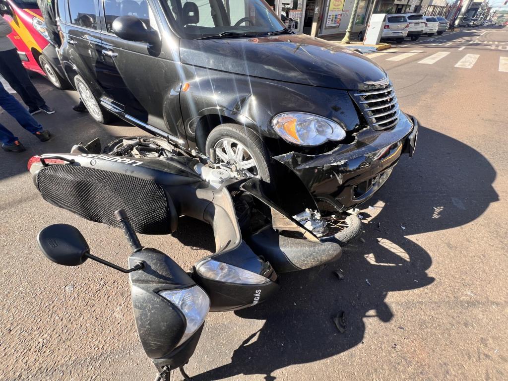 No cruzamento, os veículos colidiram, resultando em ferimentos leves no motociclista de 20 anos. Após avaliação do Corpo de Bombeiros, ele não precisou ser encaminhado ao hospital.