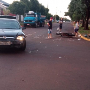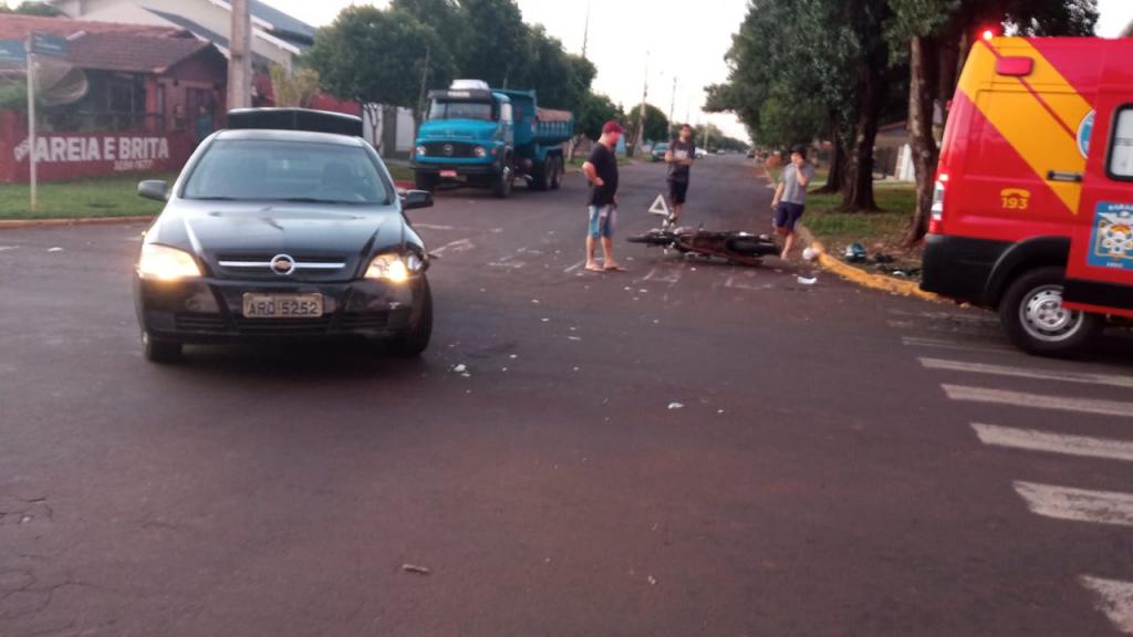 Um Astra e uma moto Kasinski, os dois veículos com placas de Cascavel se envolveram em uma colisão no final da tarde desta quinta-feira em Marechal Rondon, na rua Salvador com a rua José Bonifácio, proximidades do Posto Copagril.