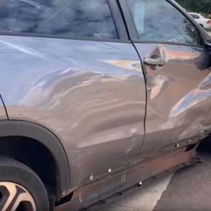 Um jovem, de 27 anos, ficou ferido em um acidente entre carro e a motocicleta que ele conduzia em Cascavel, no início da tarde desta terça-feira (1º). A batida aconteceu no cruzamento da Rua Ararajuba e Avenida Papagaios.