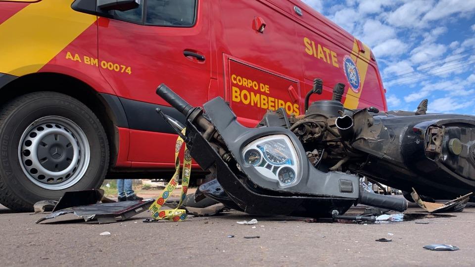 De acordo com informações, os dois veículos trafegavam pela Rua Papagaios em sentidos opostos quando bateram no cruzamento. Com o impacto, a motocicleta ficou completamente destruída.