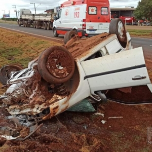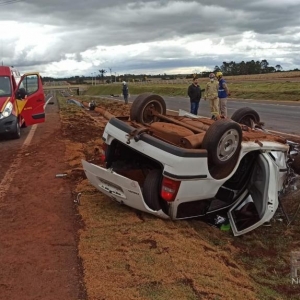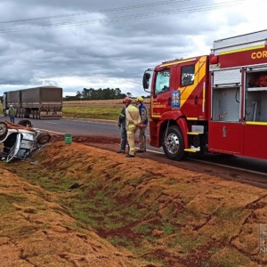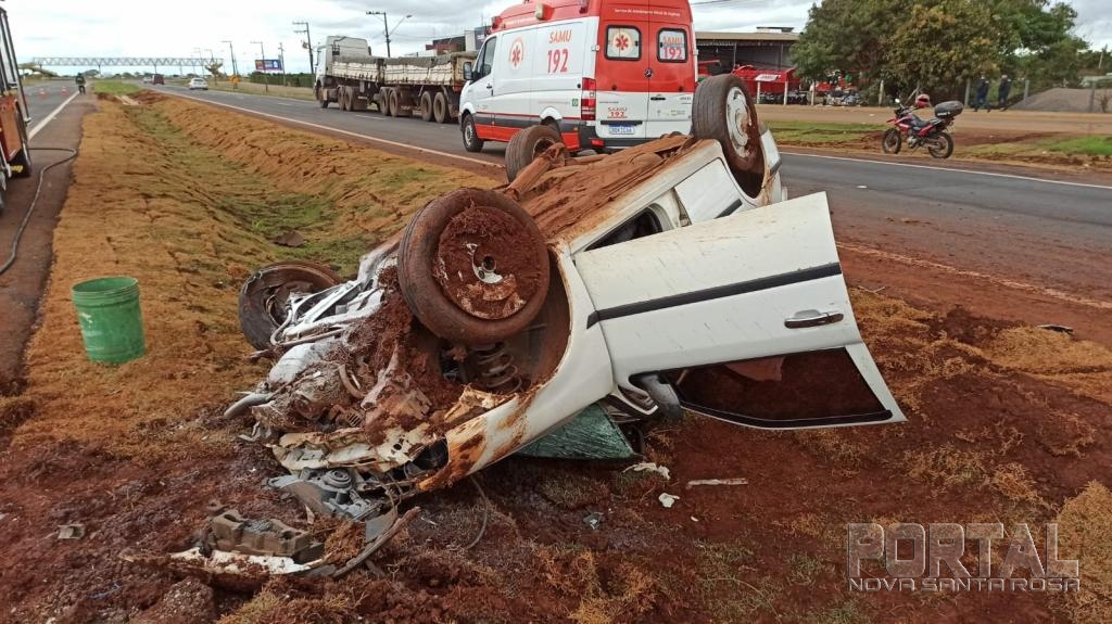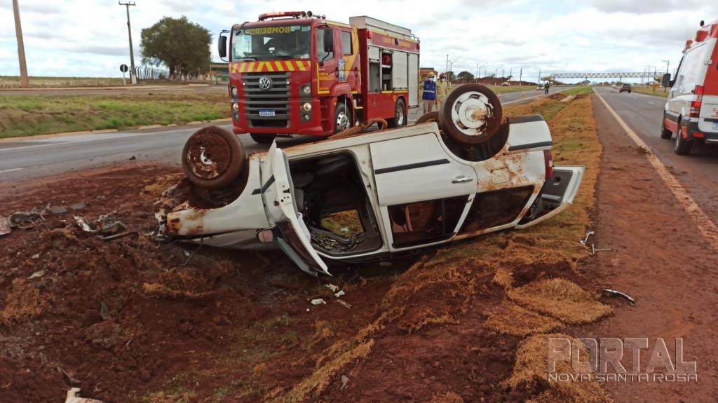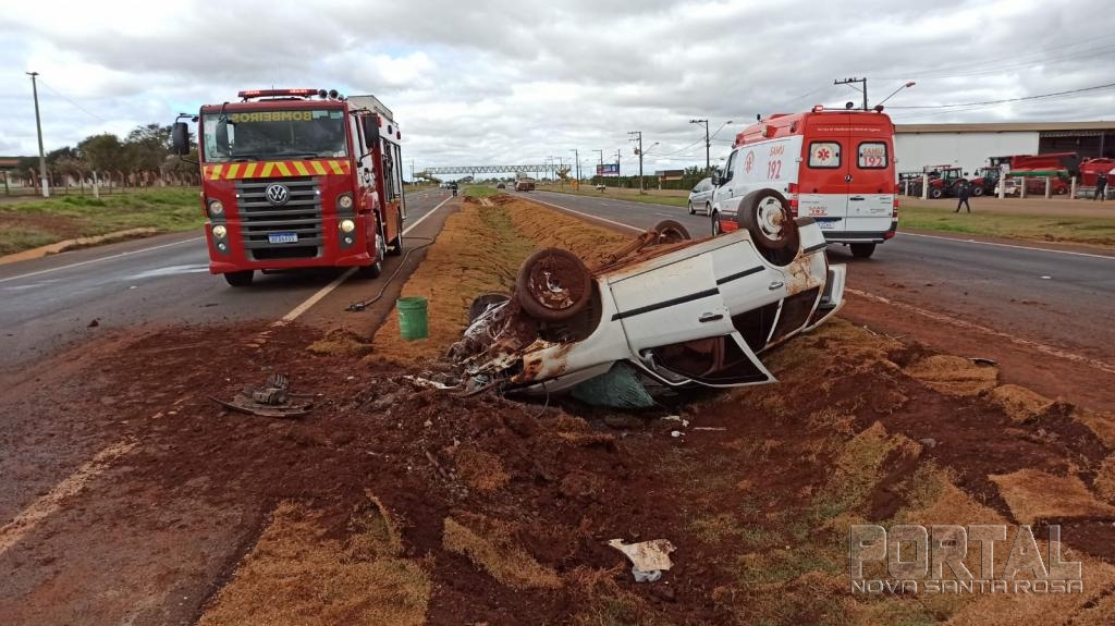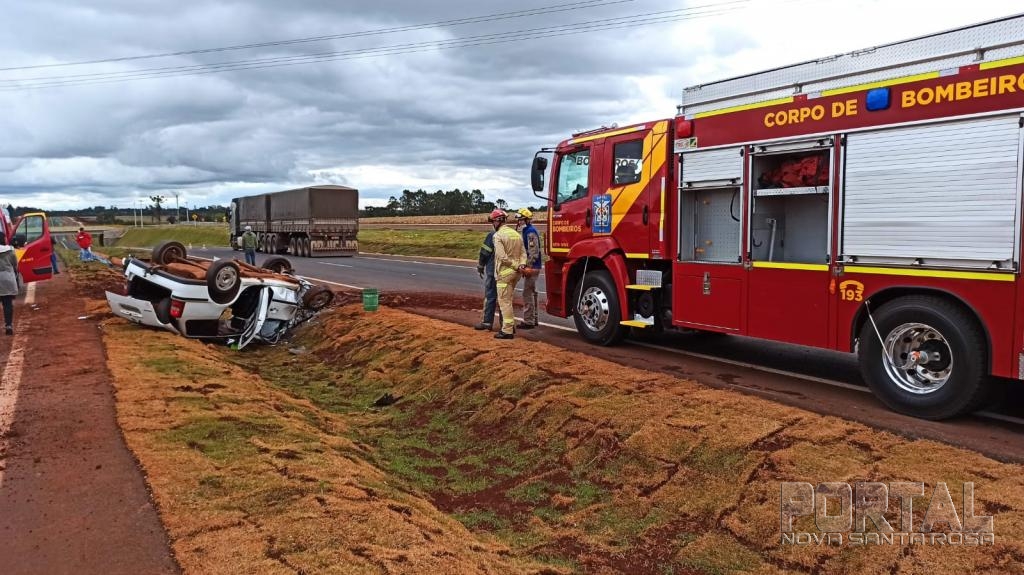 A Polícia Rodoviária Federal atendeu a ocorrência, o veículo Parati, ao capotar teve princípio de incêndio na parte do motor, mas foi logo controlado pelos bombeiros.