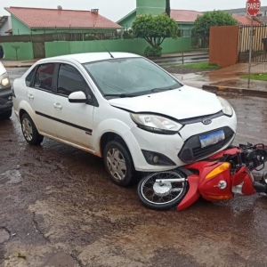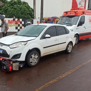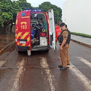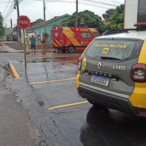 Uma mulher, de 57 anos, resultou com suspeita de fratura na perna direita e traumatismo craniano após se envolver em um grave acidente, por volta do meio-dia desta quarta-feira (24), no Jardim Maracanã, em Toledo.